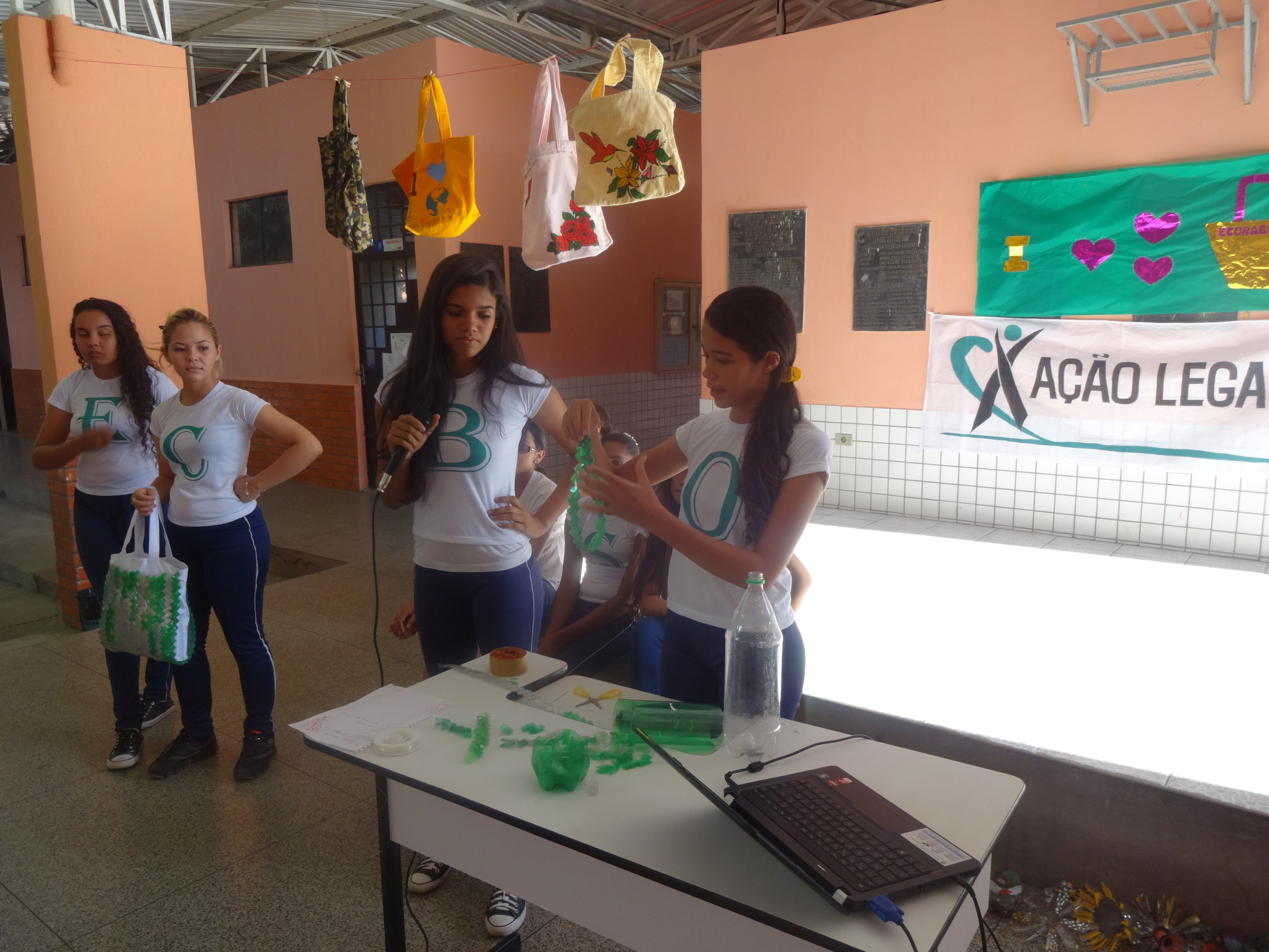 Já na parte da tarde, a Campanha Ecobags – por uma vida mais sustentável exibiu o vídeo da campanha elaborado pelo grupo, demonstrou o processo de criação de uma ecobag. No final, realizou o sorteio de uma sacola sustentável. O ganhador foi o aluno Tales Ferreira, do EMTA3.