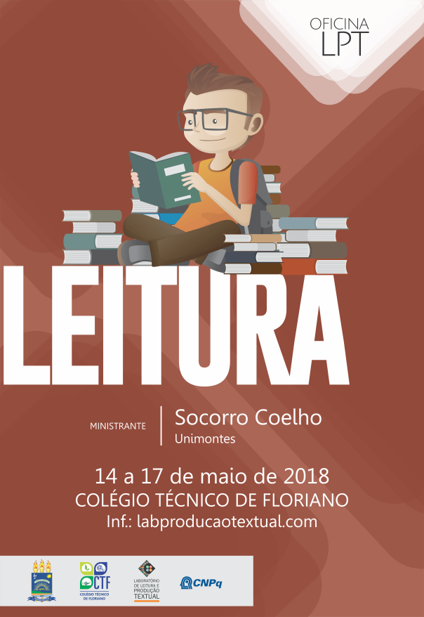 Na semana de 14 a 18 de abril de 2019, o Laboratório de Leitura e Produção Textual (LPT/CNPq) realizará três Oficinas: a primeira é Leitura (com a professora Socorro Coelho, Unimontes)