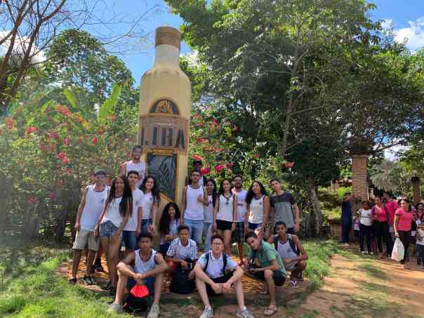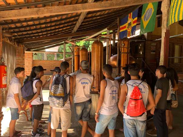 Professor Ribamar Jr e estudantes do 3º do Colégio Técnico de Floriano na fábrica da Cachaça Lira, em Amarante/PI.