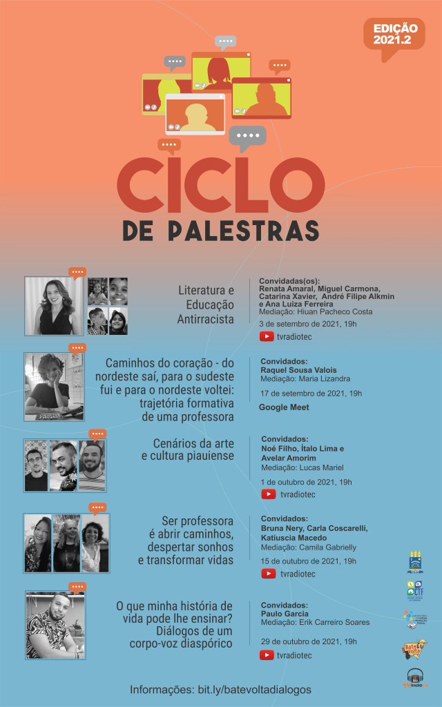 Estão abertas as inscrições gratuitas para a 3ª edição do Ciclo de Palestras do projeto de extensão Bate & Volta Diálogos do Laboratório de Leitura e Produção Textual (Colégio Técnico de Floriano/UFPI).