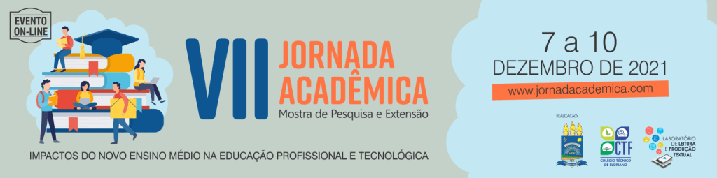 Estão abertas as inscrições gratuitas para a sétima edição da Jornada Acadêmica & Mostra de Pesquisa e Extensão, organizado pelo Laboratório de Leitura e Produção Textual (LPT/CNPq) do Colégio Técnico de Floriano (CTF/UFPI) com o tema: Impactos do novo ensino médio na educação profissional e tecnológica.