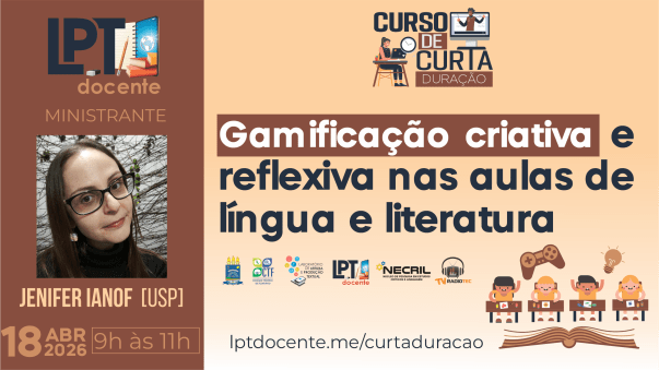 Estão abertas até 17 de abril de 2026 as inscrições gratuitas para o curso on-line de curta duração Gamificação criativa e reflexiva nas aulas de língua e literatura promovido pelo projeto de extensão LPT Docente do Laboratório de Leitura e Produção Textual [LPT/CNPq] do Colégio Técnico de Floriano [UFPI], em parceria com Núcleo de Pesquisa em Estudos Críticos e Linguagem [NECRIL] e a Pró-Reitoria de Extensão e Cultura [PREXC/UFPI].