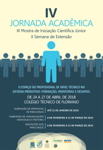 De 24 a 28 de abril de 2018, acontecerão IV Jornada Acadêmica, III Mostra de Iniciação Científica Junior e II Semana de Extensão, no Colégio Técnico de Floriano/UFPI, em Floriano, Piauí, Brasil.