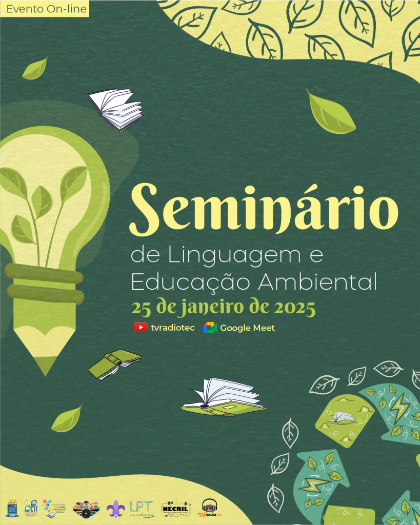 Estão abertas até 24 de janeiro de 2025 as inscrições gratuitas para a 1ª edição do Seminário de Linguagem e Educação Ambiental [SeLEA], uma iniciativa do Laboratório de Leitura e Produção Textual [LPT/CNPq] e do projeto Super R’s da Diferença, com o apoio da Coordenação de Letras Vernáculas. O evento acontecerá no dia 25 de janeiro de 2025 no formato on-line: com atividades no canal da TV Radiotec no YouTube e na plataforma Google Meet. Faça sua inscrição aqui.