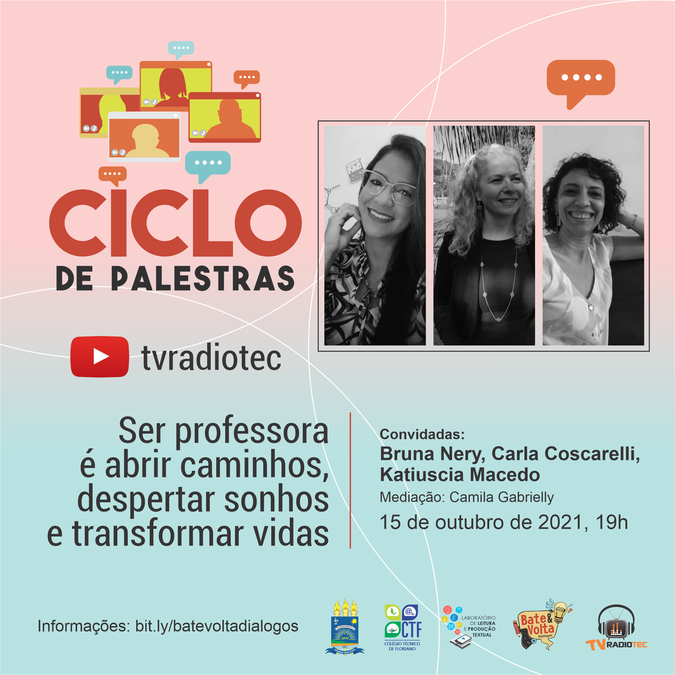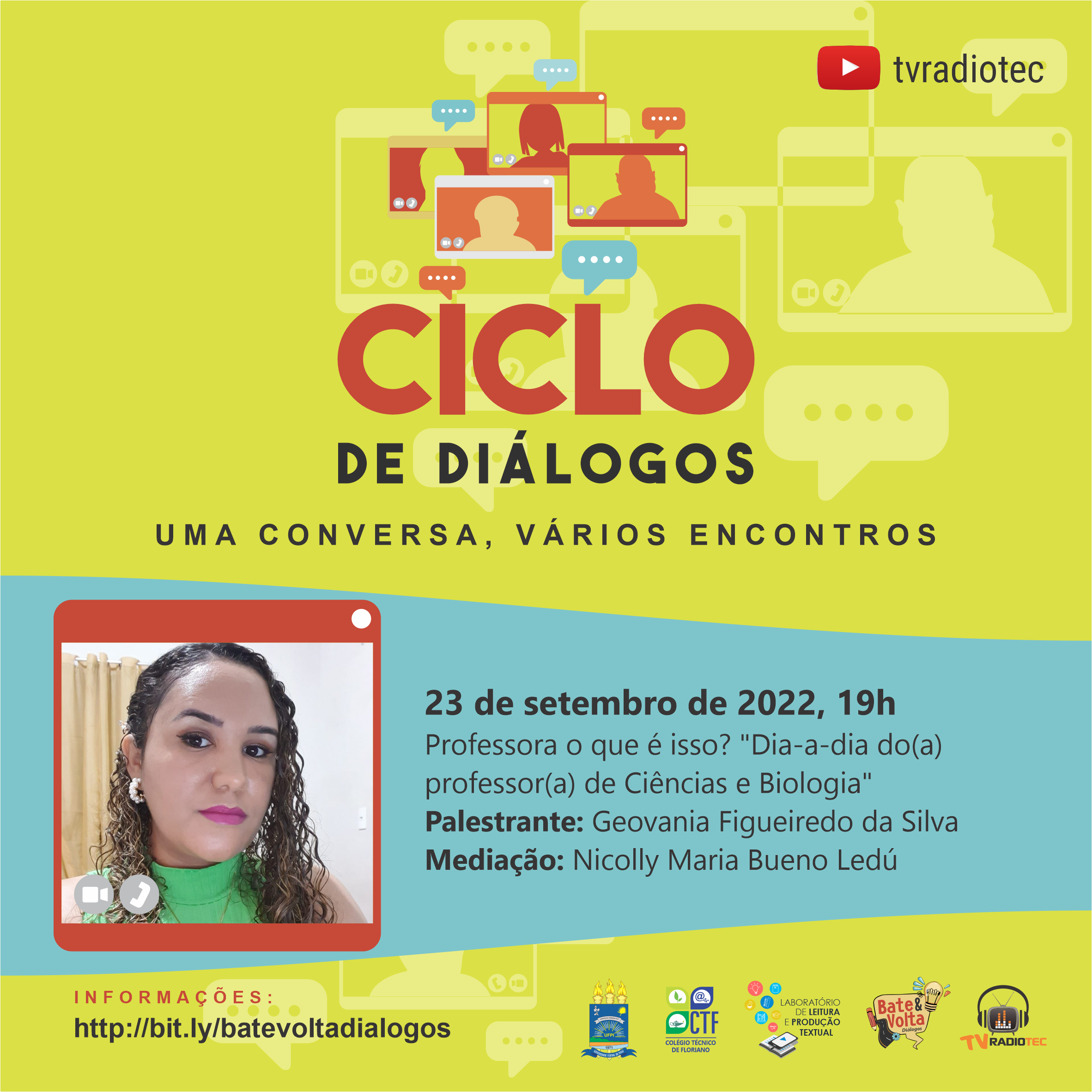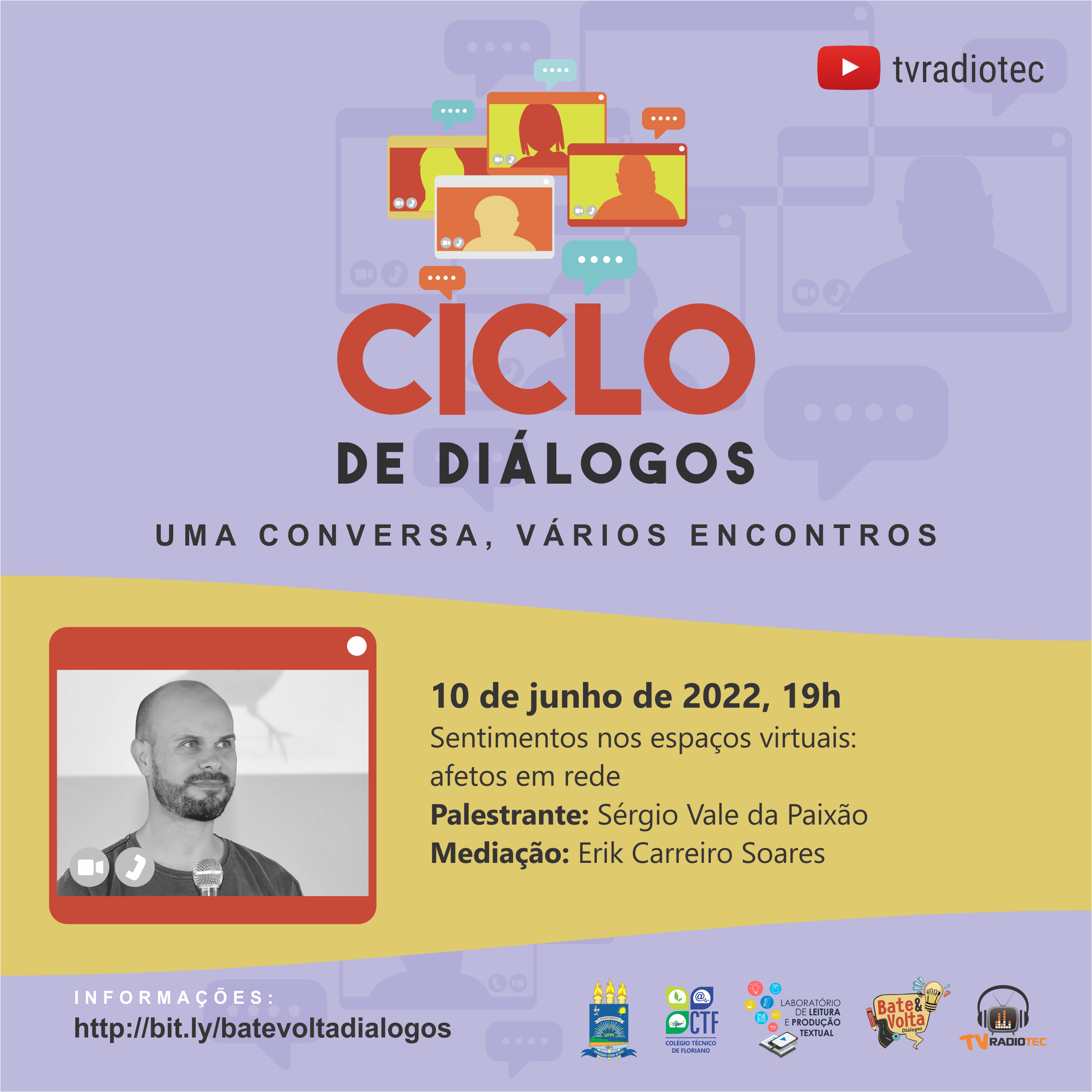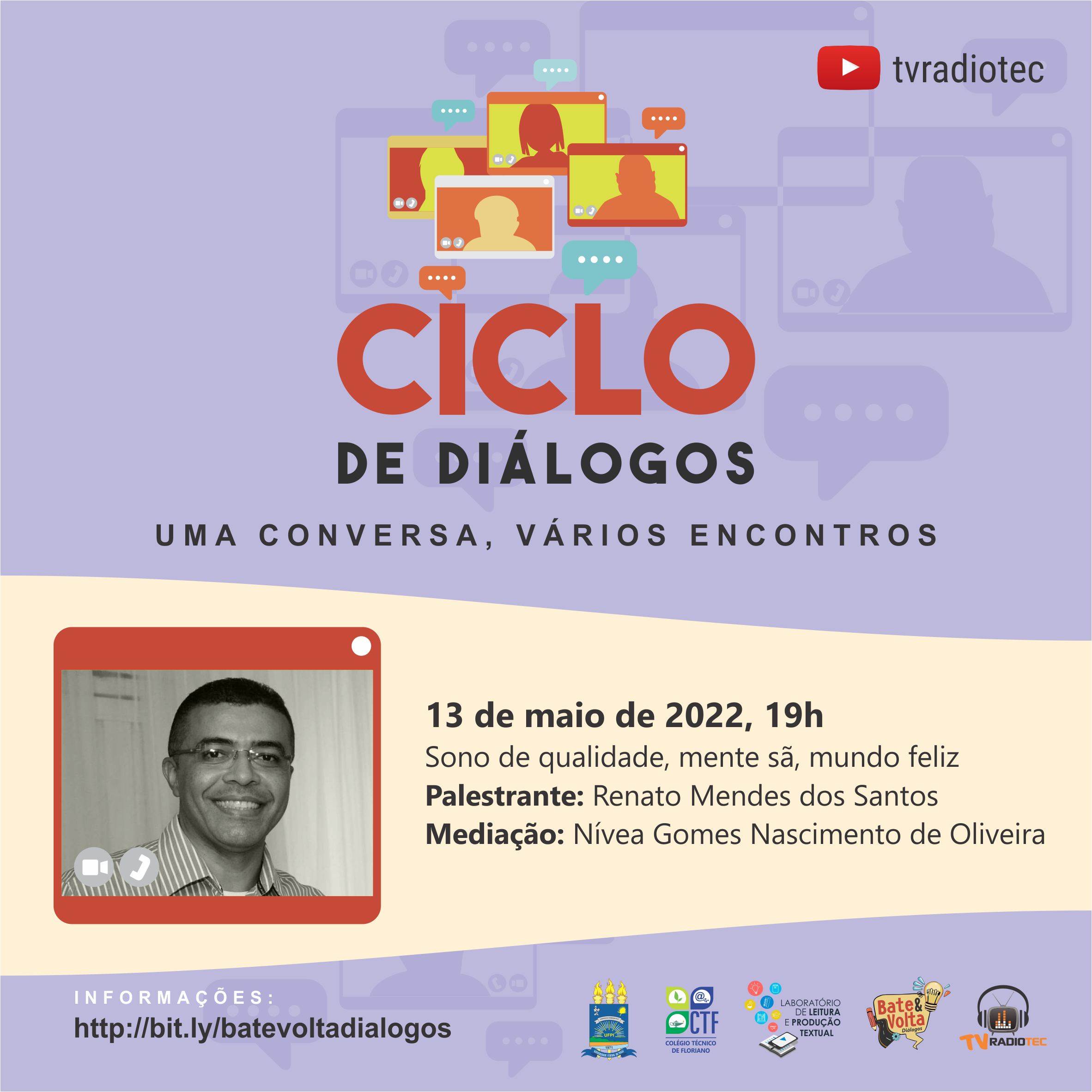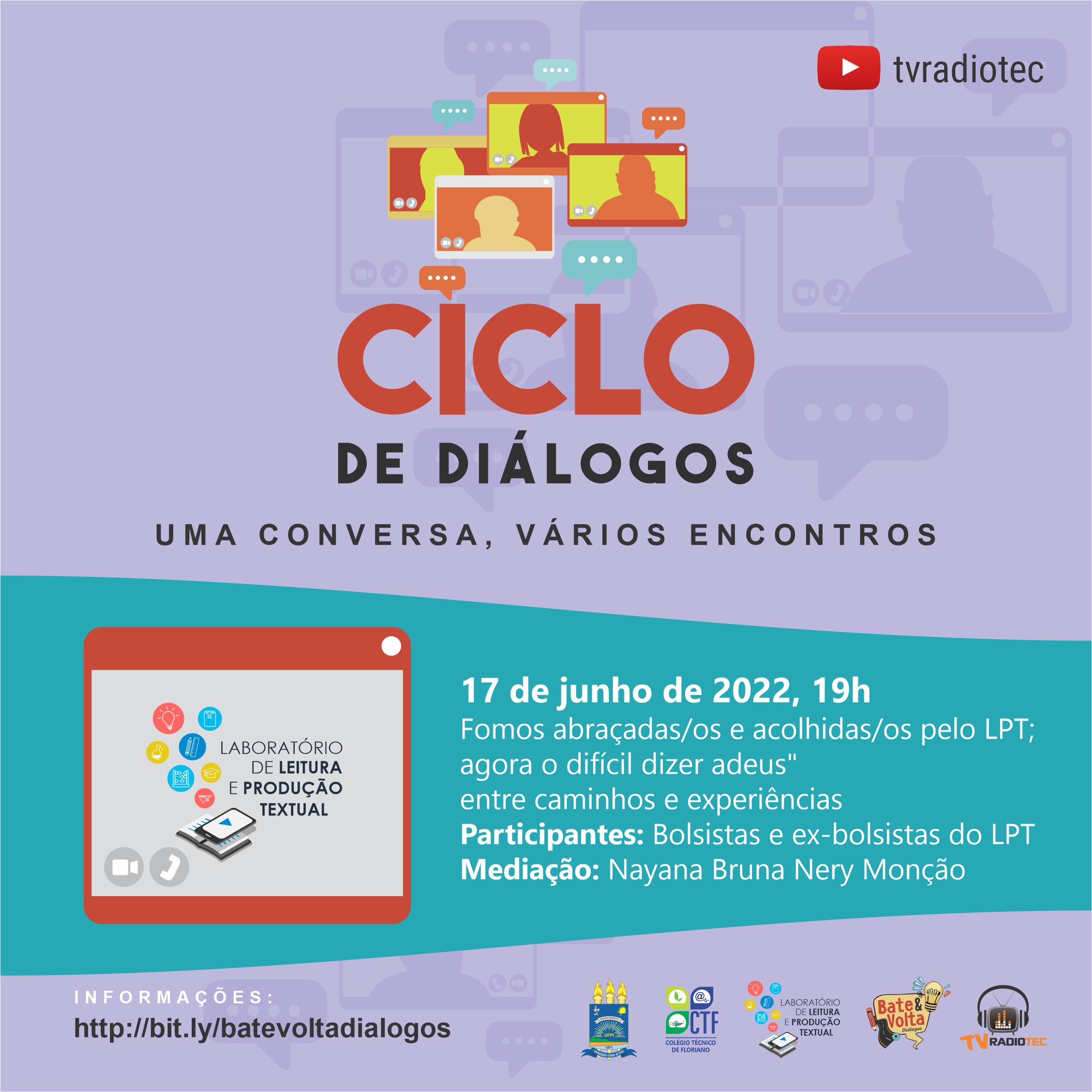 Um espaço para troca de conhecimentos e experiências. Além da apresentação por parte dos/as convidados/as, o público-alvo poderá interagir por meio de perguntas e/ou comentários.
