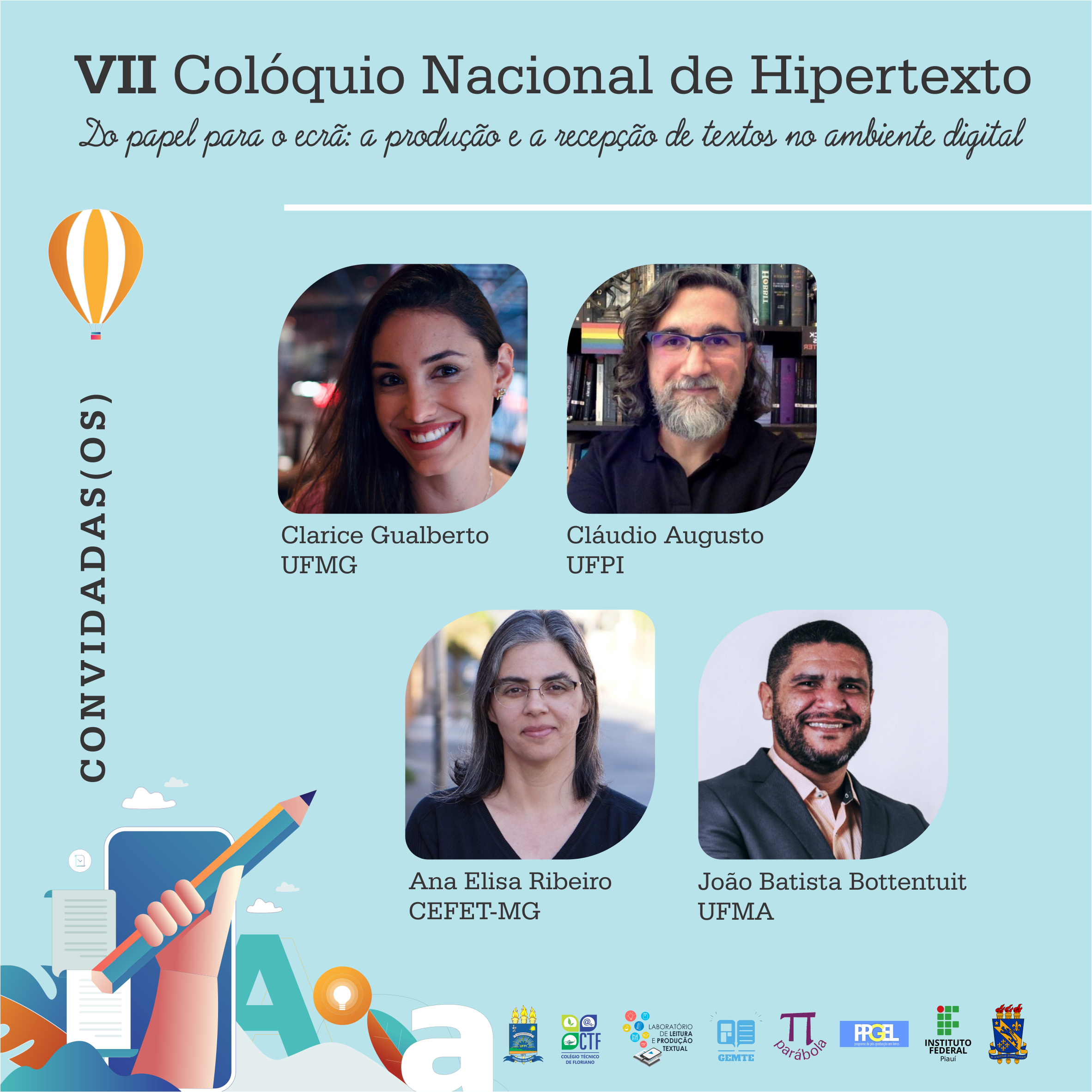 O Laboratório de Leitura e Produção Textual (LPT/CNPq) do Colégio Técnico de Floriano (CTF/UFPI) tem a satisfação de anunciar a sétima edição do Colóquio Nacional de Hipertexto (CHIP), a ser realizado on-line, no canal da TV Radiotec no YouTube e nas salas do Google Meet, nos dias 21 e 22 de outubro de 2021.